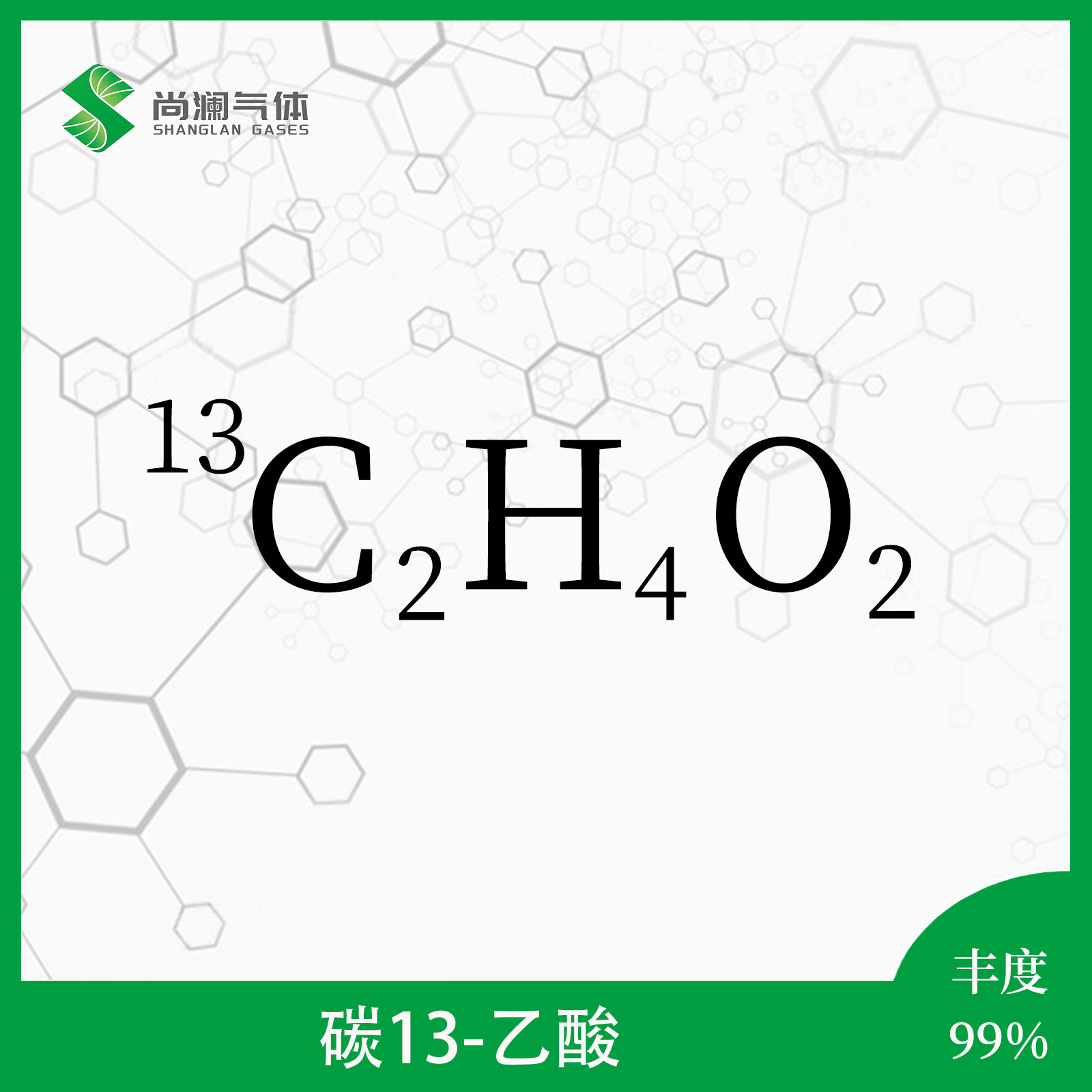 容器与环境:硼硅玻璃瓶(PTFE密封),标“碳13乙酸”“易燃腐蚀”,存于≤25℃通风库(湿度≤60%),配可燃气体探测器(10%LEL)、应急冲洗;